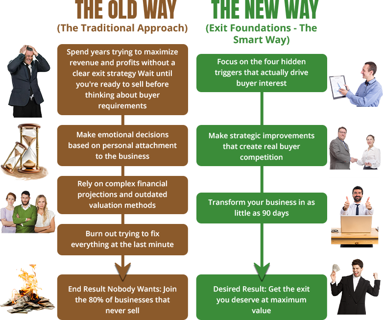 Past results mentioned in testimonials or case studies do not guarantee similar outcomes. Business exit success varies based on numerous factors including, but not limited to, market conditions, industry dynamics, business performance, and timing. The "successful business exits" referenced are based on historical examples and should not be interpreted as a guarantee of future results.